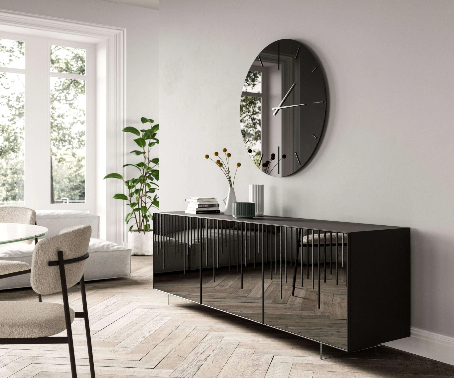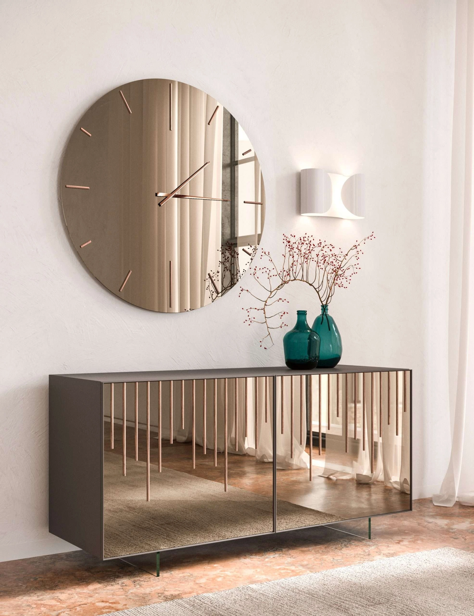 Le composizioni di alto valore estetico del marchio Ozzio rendono belli l'ambiente con i loro colori e gusto, ricreando peculiari atmosfere arredative. Nel nostro showroom potrai toccare con mano la qualità dei modelli di orologi moderni in vetro della firma, proprio come questa soluzione in foto. Assai versatili e plurifunzionali, i Complementi moderni in vetro rispondono a funzioni diverse: completano le doti di funzionalità e l'estetica del locale. Orologio a specchio Replay di Ozzio in vetro: aggiungerà carattere e fascino a un locale ammobiliato con mobili ed elementi accessori dai richiami moderni.