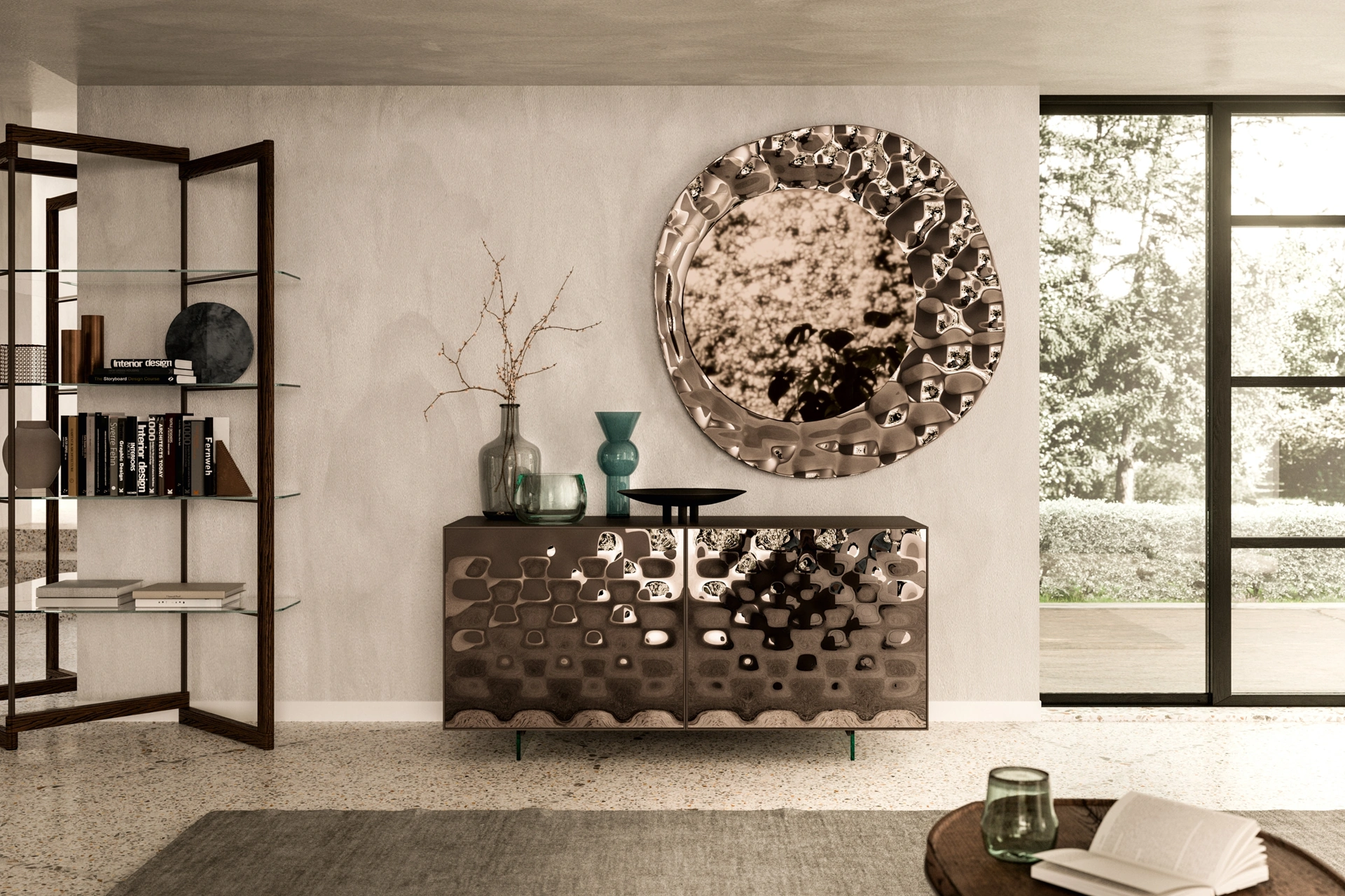 Dalla camera al living, questi accessori risultano oggetti imprescindibili per ultimare perfettamente le doti di funzionalità e il valore estetico dei locali. Da noi potrai toccare con mano tutte le più originali composizioni del conosciuto brand, tra cui trovi pure quelle complete di specchi design in vetro. La firma Ozzio significa eccellenza e stile: visitarci significa affidarsi alla pluriennale esperienza e passione del brand. Raffinatezza e funzionalità connotano le diverse soluzioni del brand, tra cui questa soluzione di Specchio di design con cornice in vetro Sea di Ozzio in vetro di grande impatto decorativo.
