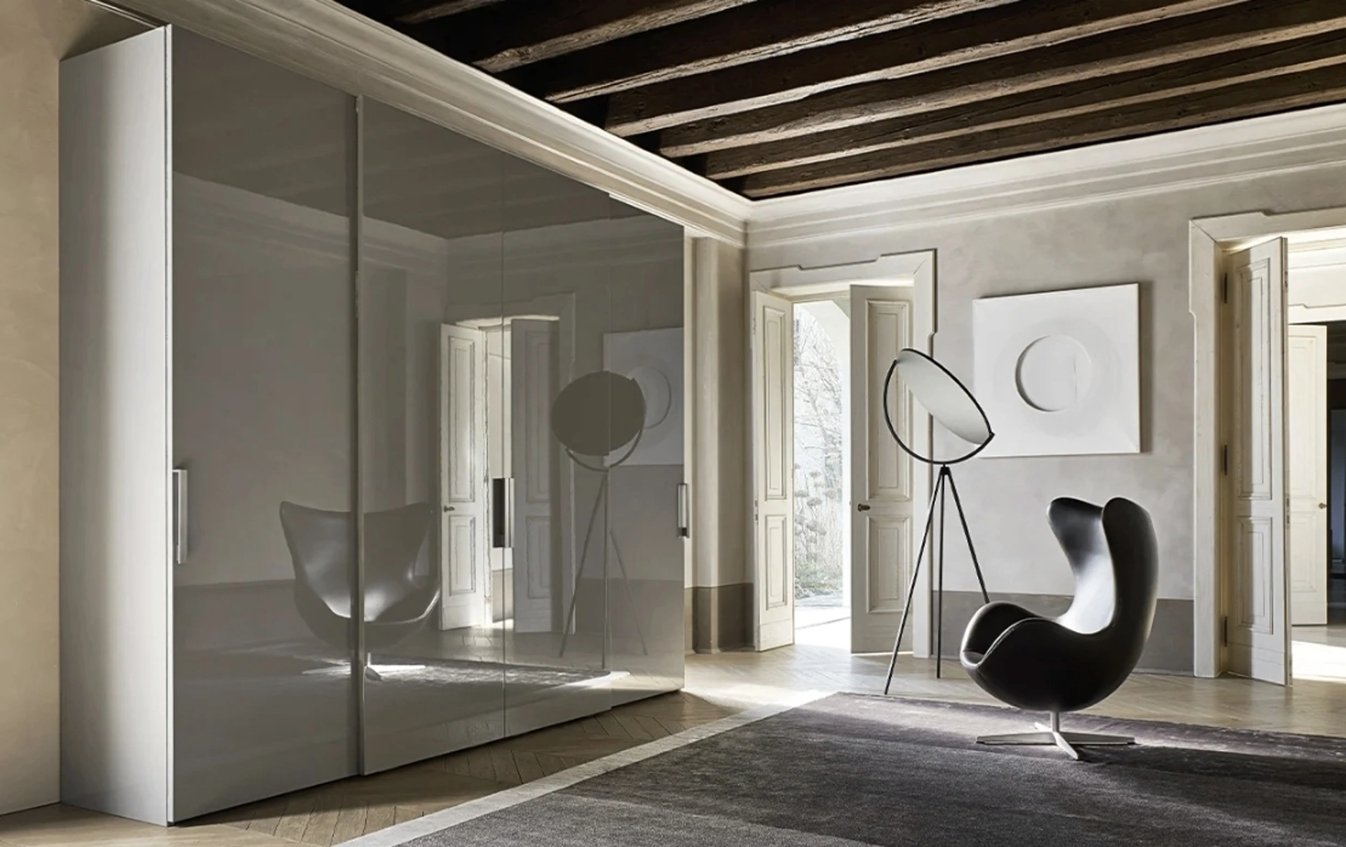 Gli Armadi e Cabine Armadio a muro con ante scorrevoli sono componenti essenziali nella camera da letto, per renderla ammobiliata al meglio, funzionale e completa di tutto. Contattaci e ottieni informazioni sulla nostra linea di Arredamento Casa: potrai ultimare la camera da letto contando su una ricca varietà di mobili contenitori moderni, come l'armadio in laccato lucido nella fotografia. Per arredare al meglio una stanza funzionale ed esteticamente gradevole, scegli le più esclusive soluzioni dei migliori produttori, letti, armadi e comodini di grande design.