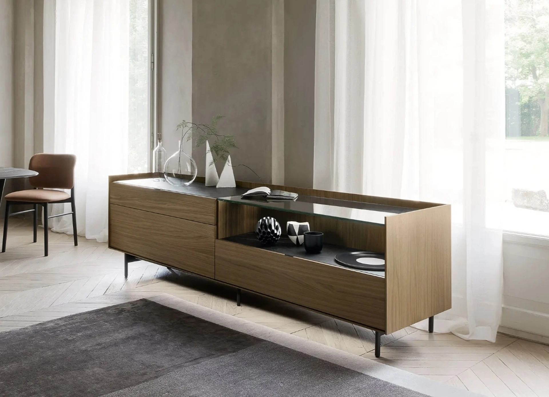 Se sei un appassionato di mobili e sei sempre aggiornato riguardo l'evoluzione del design nel campo, il nostro centro espositivo è il luogo ideale per te. Se quello che cerchi è un modello di mobile soggiorno salvaspazio, scopri in negozio un ricco catalogo di Arredamento Casa delle migliori marche e contattaci per informazioni e preventivi. La Madia Cabaret 01 di Sangiacomo in foto in legno risolve le più particolari necessità di spazio e stile, arredando il soggiorno con praticità e uno stile unico. Le Madie moderne, tra cui il modello presente in foto, valorizzano il soggiorno o la zona pranzo grazie a linee ben studiate e grandi doti contenitive.