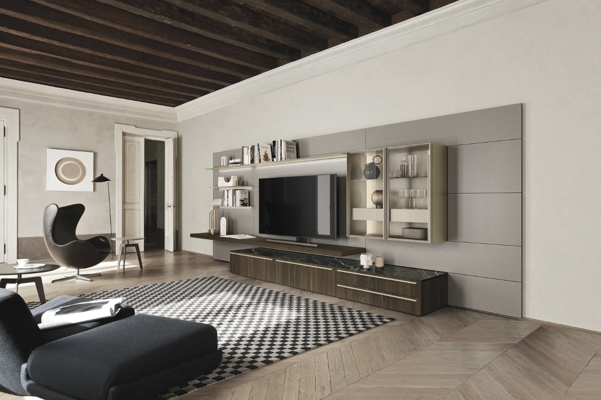 Attraverso un gioco dinamico di accostamenti fra elementi a giorno o vani chiusi, le Pareti Attrezzate moderne arredano il living usufruendo al meglio di ogni spazio. Le Pareti Attrezzate hanno conquistato un posto di primo piano nella zona giorno delle nostre case: sono arredi multifunzionali e salvaspazio sempre realizzabili su misura. Questa parete attrezzata è una delle soluzioni dell'azienda e ti consentirà di arredare la zona giorno seguendo le più particolari problematiche abitative.