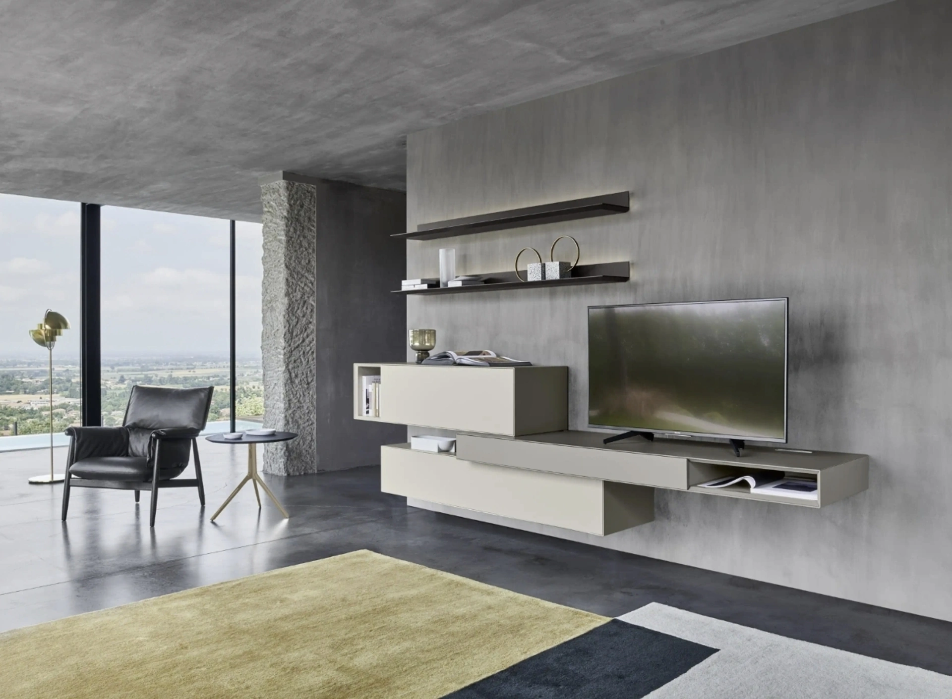 Questa proposta rappresenta tutta la qualità che il marchio assicura grazie a pluriennale competenza e grande dedizione nel settore dell'arredo e del design. Un po’ librerie, un po’ contenitori ed espositori: le Pareti Attrezzate sono ideali per sistemare uno spazio dinamico e operativo. Se cerchi arredi salvaspazio e realizzabili su misura per te, contattaci e ottieni informazioni sull'Arredamento Casa dei migliori produttori. La Parete Attrezzata sospesa Domino 04 di Sangiacomo nella fotografia, realizzata in laccato opaco, risolve le più particolari esigenze abitative di spazio e stile senza rinunciare alla ricerca estetica.