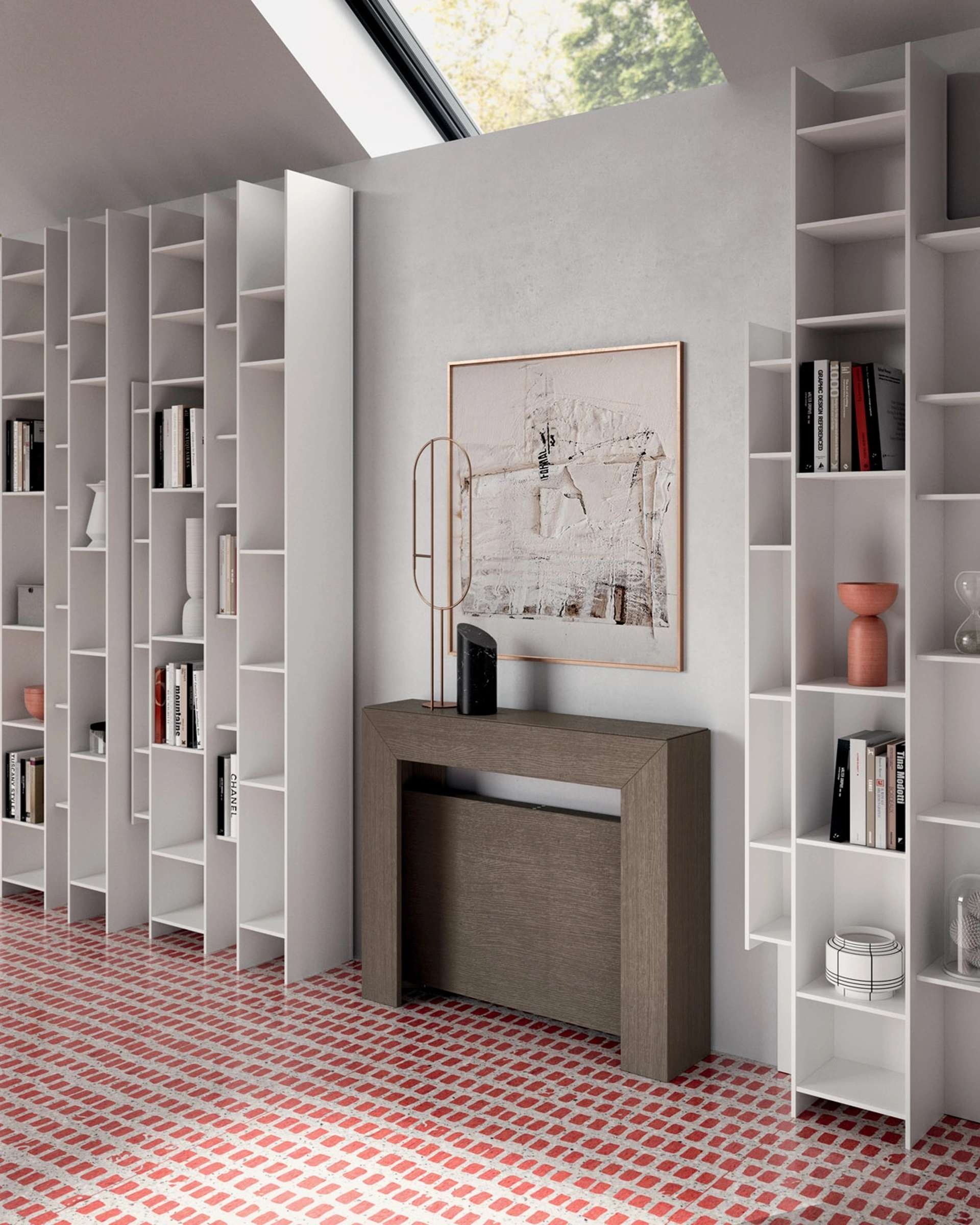 Consolle allungabile Minux di Ozzio: realizzato in materiali di prima scelta è contraddistinto dalle linee decise del top e da un basamento ricercato ed elegante. Ideali per dare vita a degli accostamenti unici con sedute e complementi design, i Tavoli consolle del brand sono soluzioni tra le più belle in commercio, ideali per il soggiorno e la cucina. Il noto e rinomato marchio Ozzio, leader nella produzione di mobili in legno, ha scelto per la sua collezione una grande varietà di materiali, linee e cromie. Un modello come quello nella fotografia, in abbinamento alle giuste sedute, saprà arricchire lo stile delle stanze domestiche dedicate in assoluto alla convivialità.