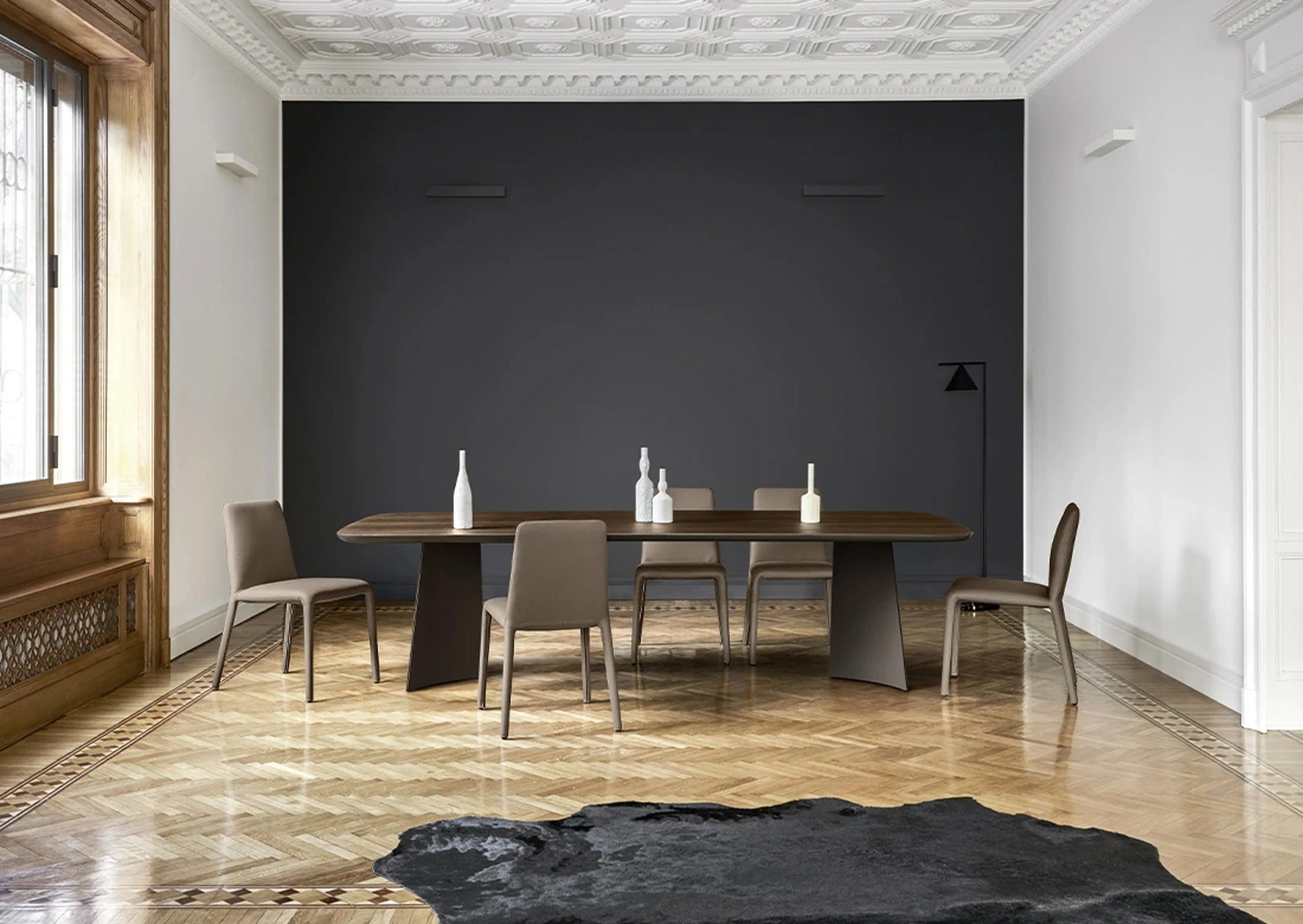 Ideali per dare vita a degli accostamenti unici con sedute e complementi design, i Tavoli fissi del brand sono soluzioni tra le più esclusive in commercio, ideali per il soggiorno e la zona cucina. Un modello come quello nell'immagine, in abbinamento alle giuste sedute, saprà valorizzare l'atmosfera delle stanze domestiche dedicate per eccellenza alla socializzazione. Tavolo Poliedro in Rovere Termotrattato di Sangiacomo: realizzato in materiali di prima scelta è caratterizzato dalle forme decise del top e da un basamento elegante e raffinato. Se desideri un tavolo da pranzo di alto contenuto estetico, contattaci e ricevi info e preventivi sul modello presente in foto.