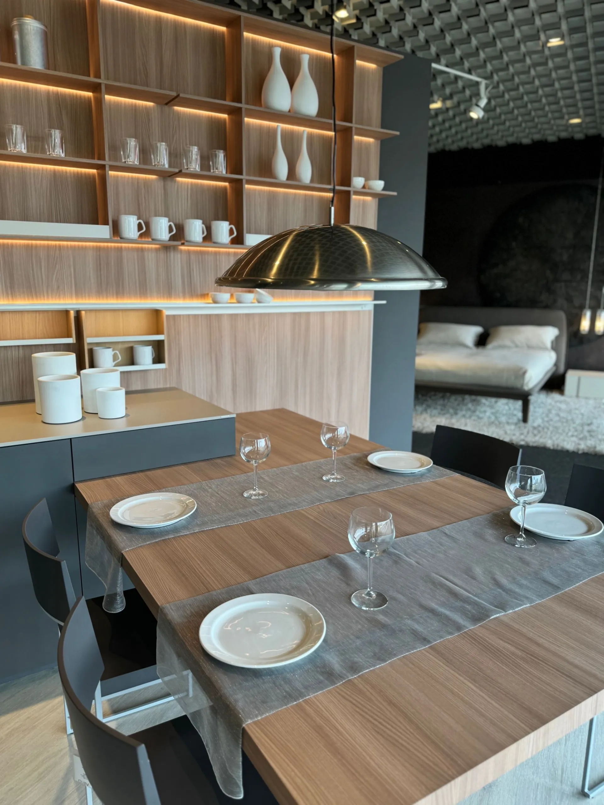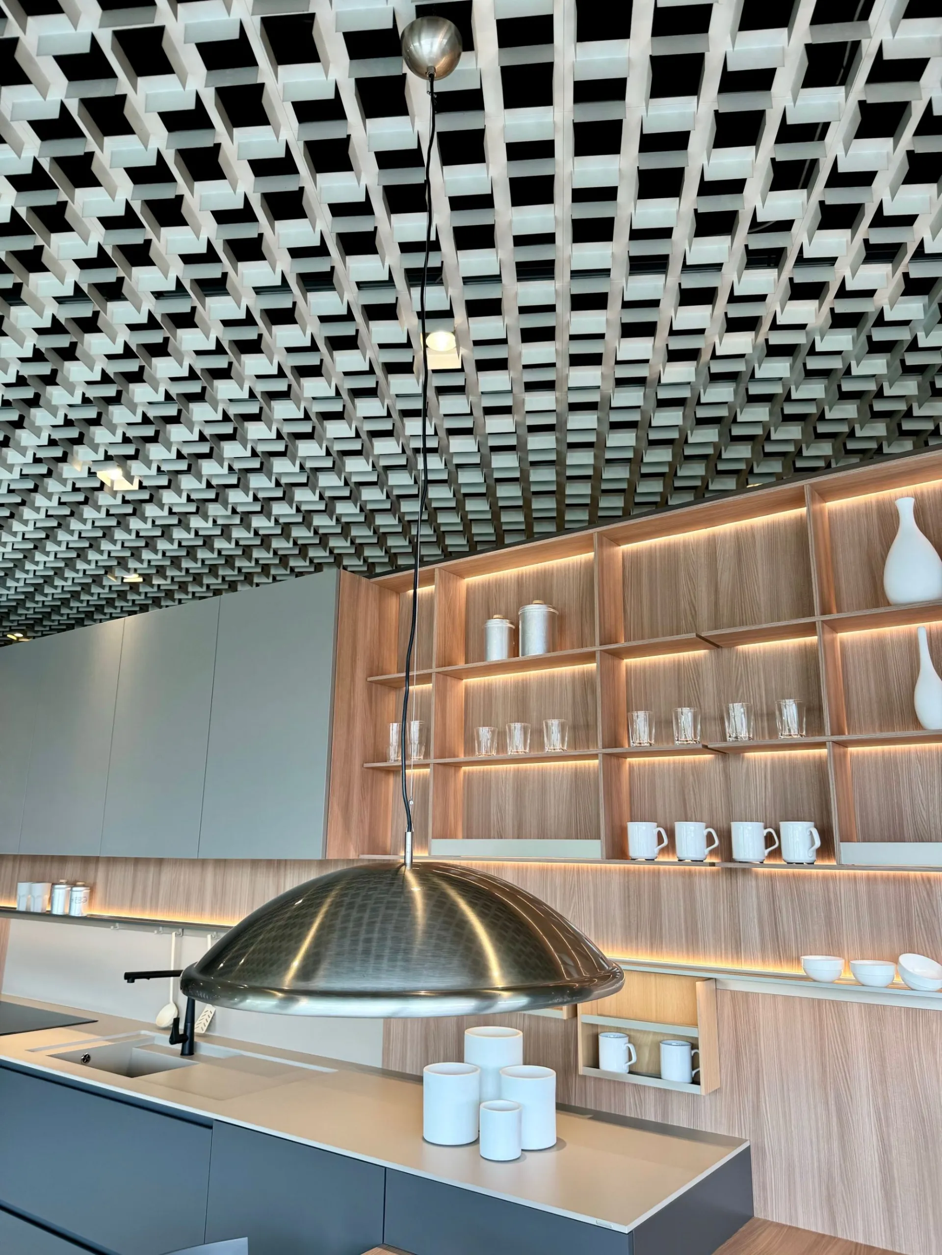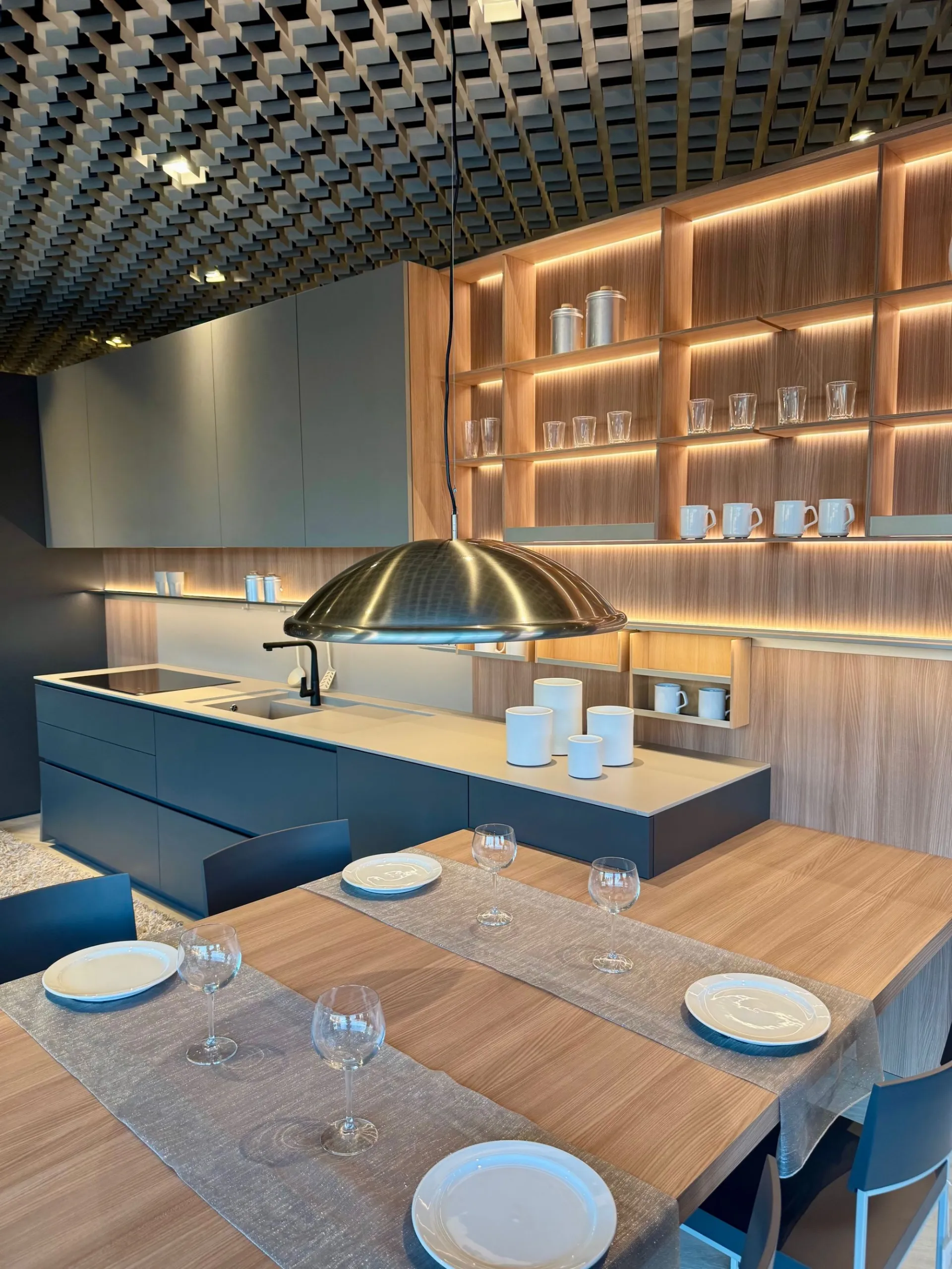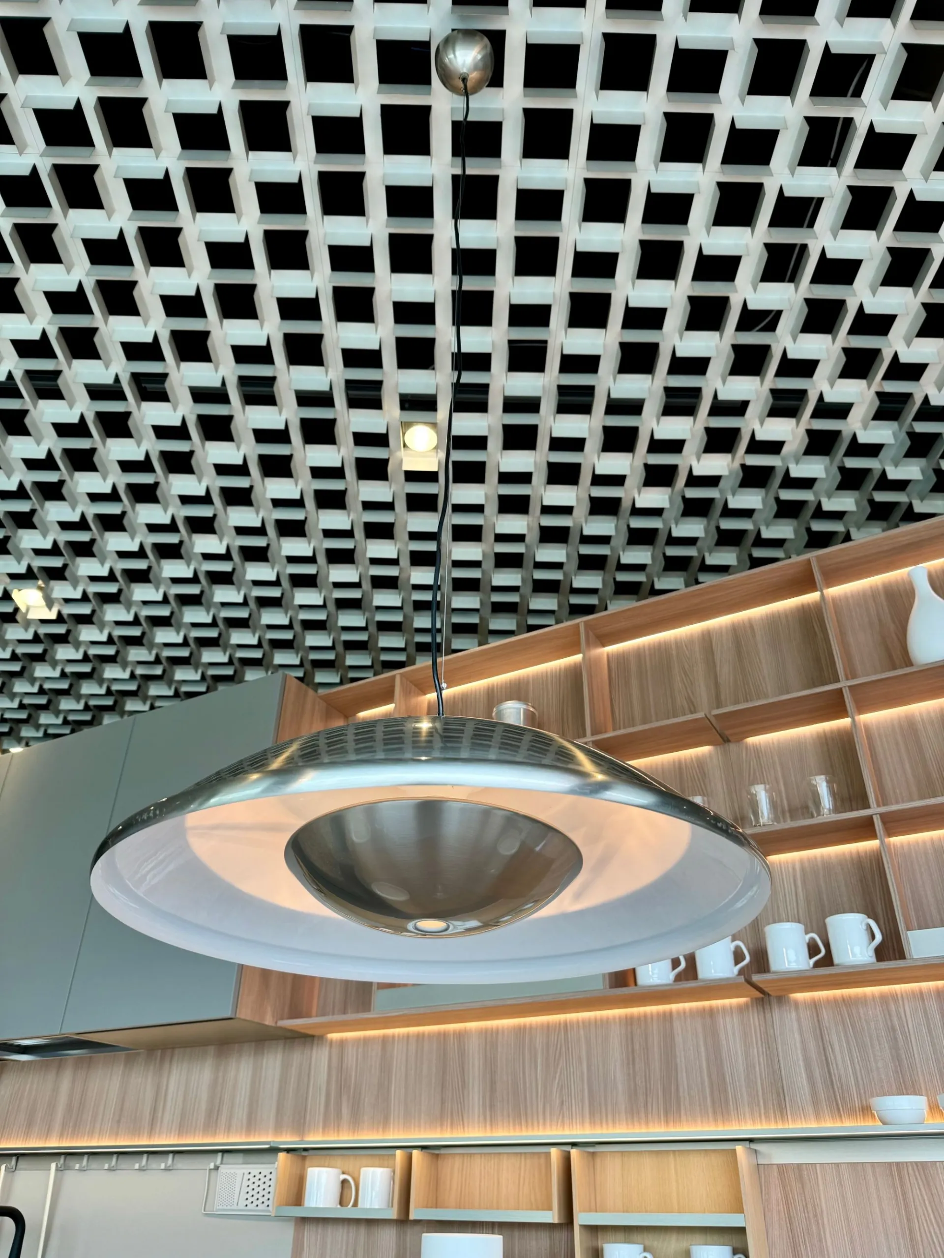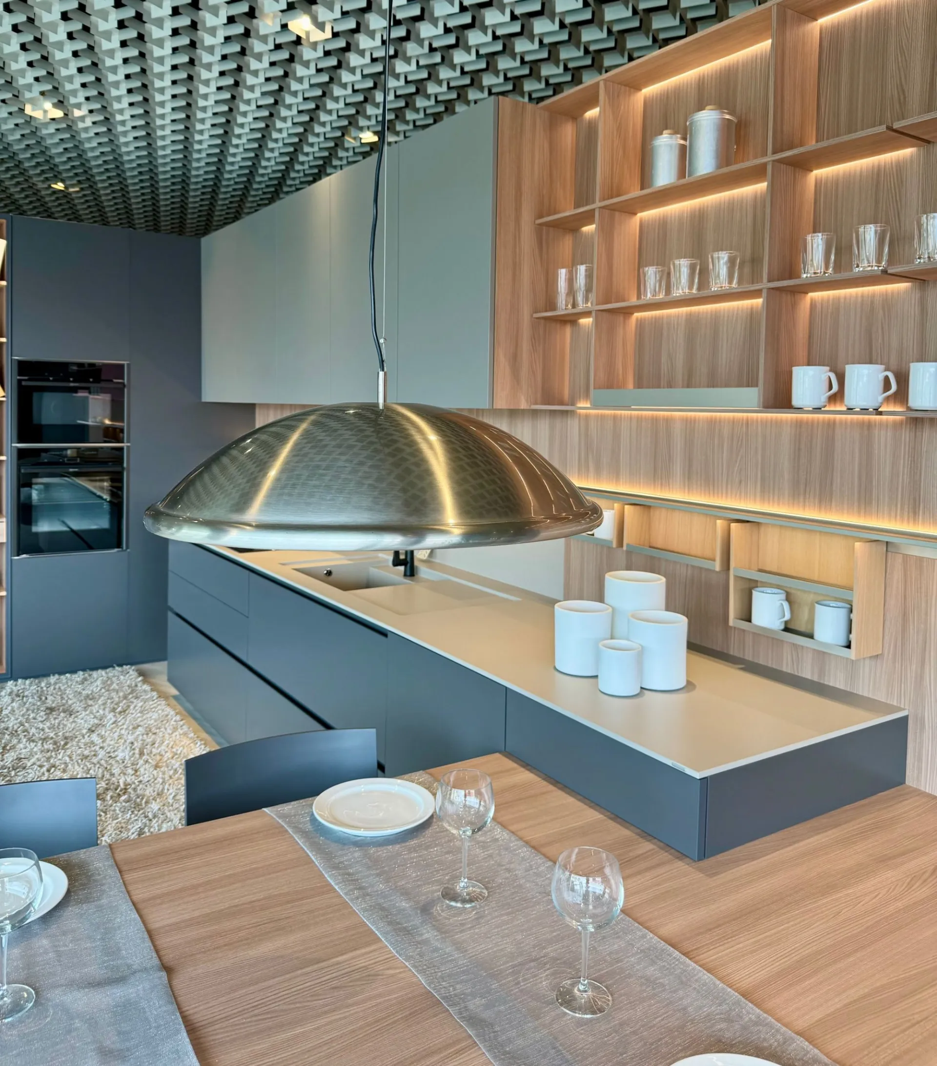 Questa lampada non è solo un elemento funzionale ma anche un vero e proprio pezzo d'arte che cattura l'attenzione. La sua presenza sopra il tavolo da pranzo o l'isola della cucina diventa subito protagonista dello spazio, valorizzando l'ambiente con la sua luce calda e invitante.