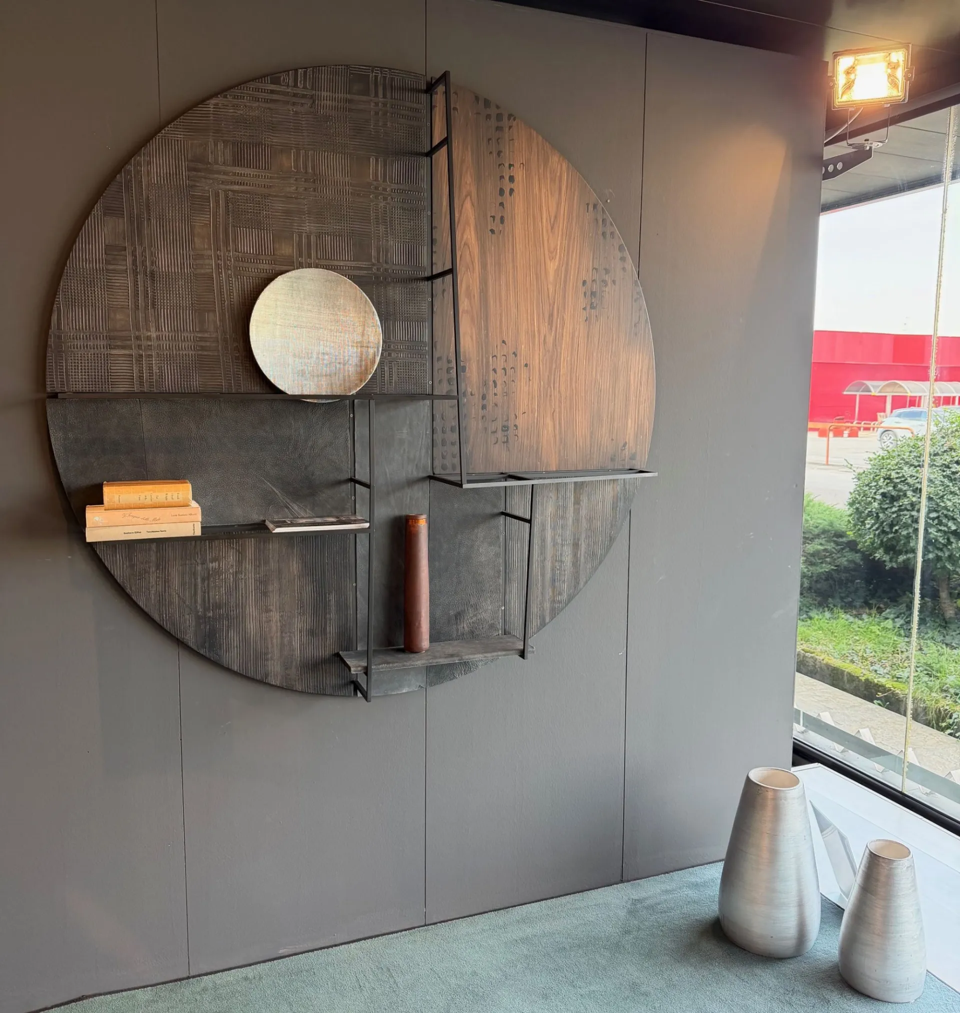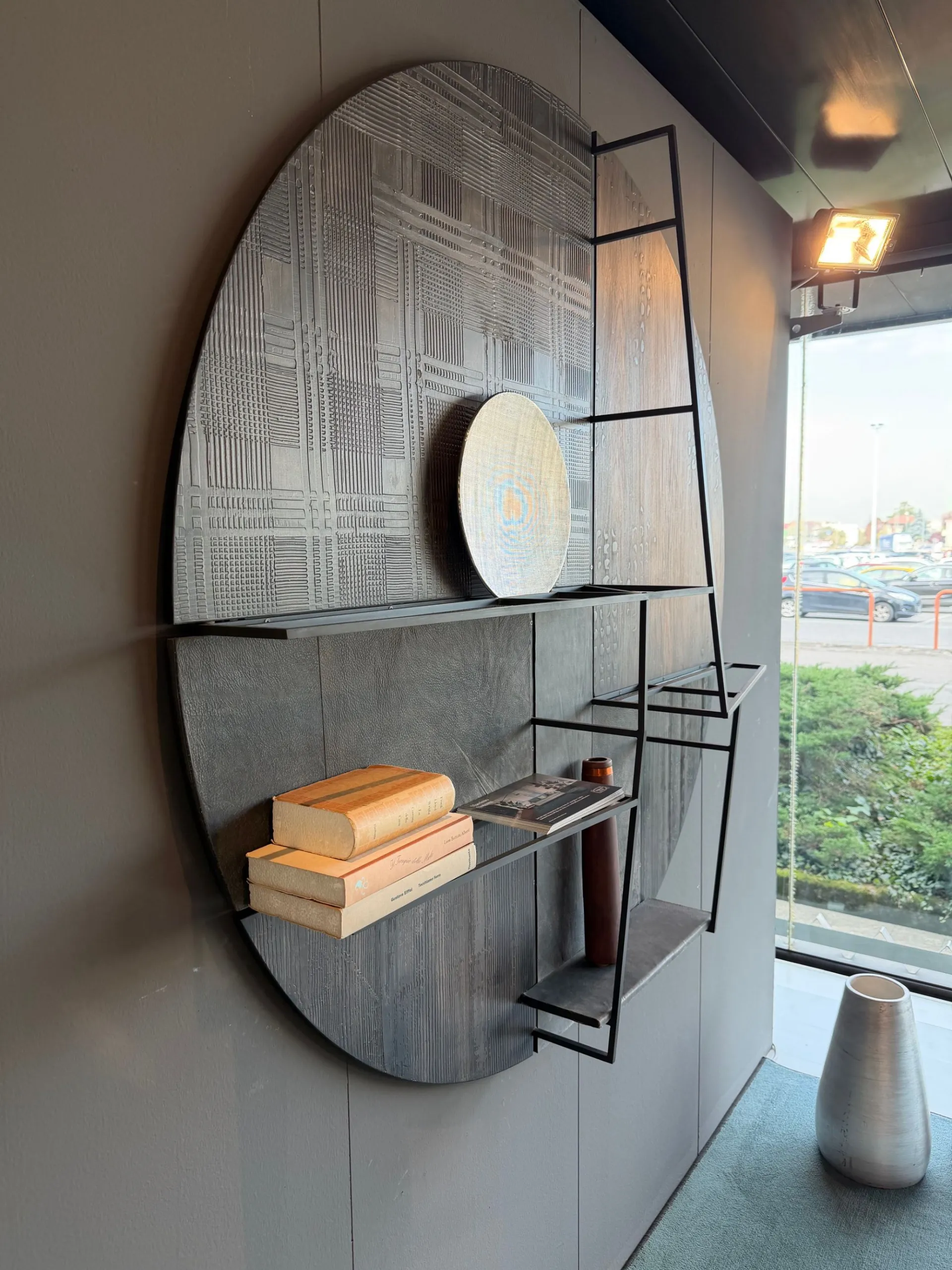 Questa libreria non è solo un elemento d'arredo, ma una vera opera d'arte che si integra perfettamente in ambienti moderni o classici. La sua forma circolare innovativa offre uno spazio espositivo dinamico per libri, oggetti d'arte o decorazioni personali.