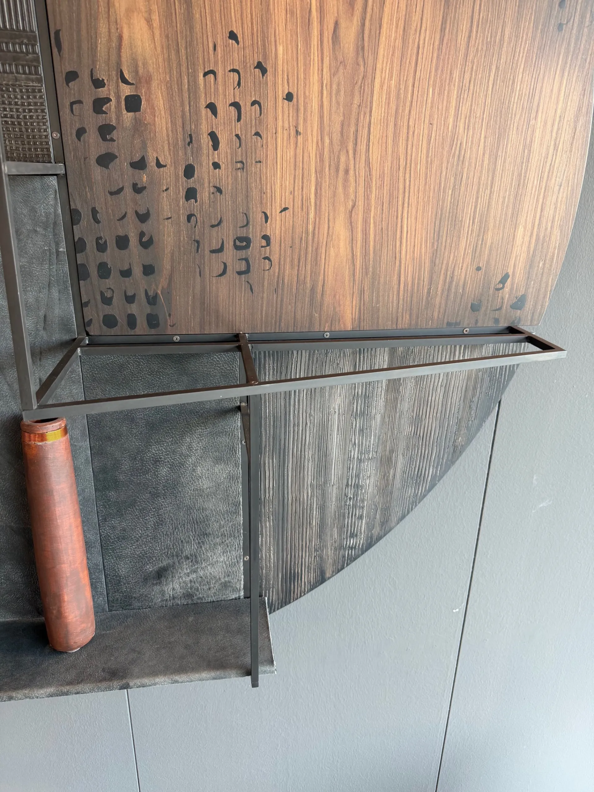 La struttura in ottone nero conferisce solidità e al contempo leggerezza data dall'intelaiatura delle parti metalliche, il tutto dona un tocco di eleganza industriale al tuo ambiente. Mentre la finitura in texture mix brown, che combina sapientemente pelle e palissandro, aggiunge calore e raffinatezza. Gli inserti in pelle non solo esaltano l'estetica del pezzo, ma offrono anche una sensazione tattile unica.