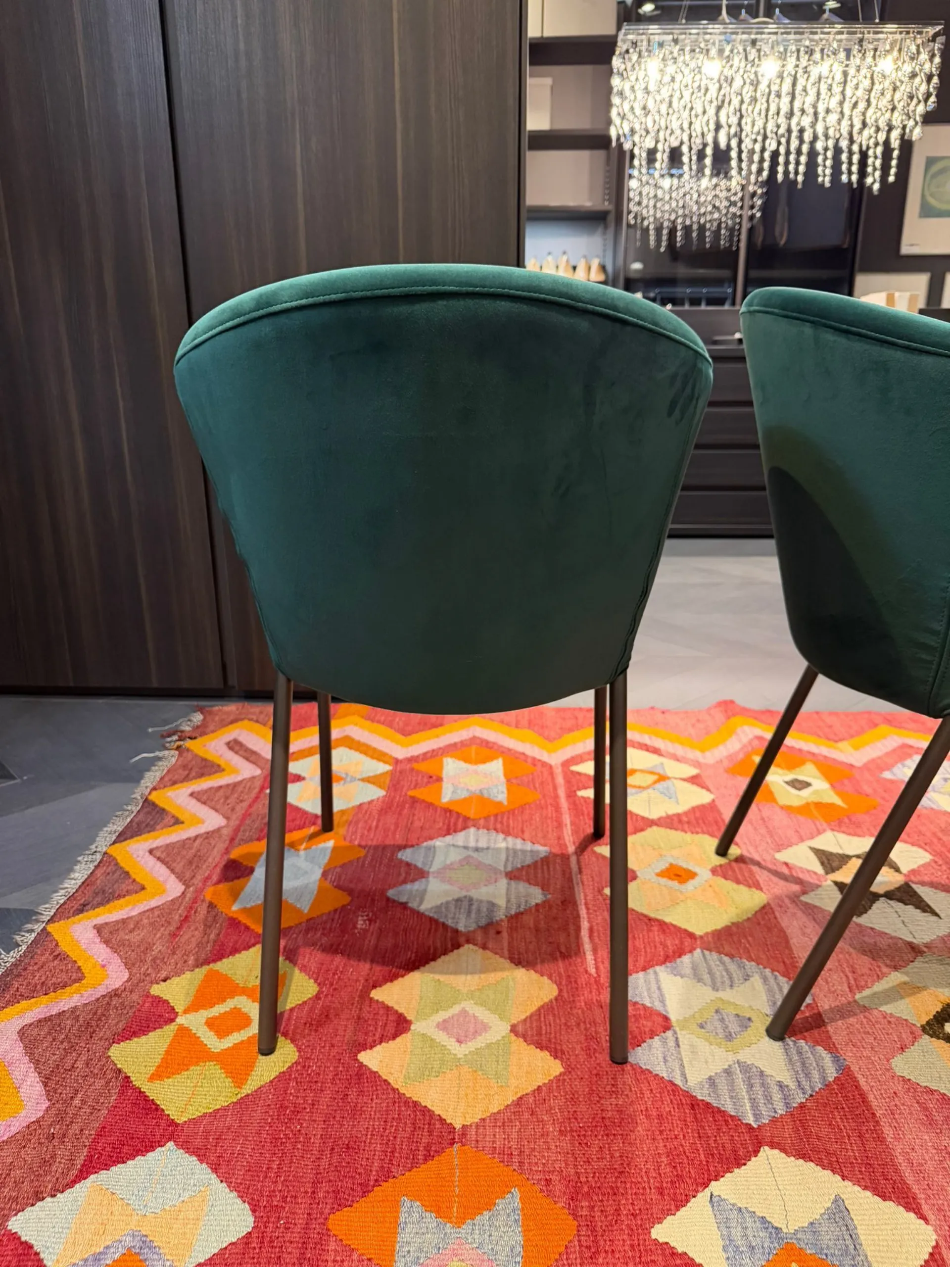 Il rivestimento in velvet color smeraldo dona alla sedia una sensazione di lusso e raffinatezza, rendendola un elemento distintivo in qualsiasi ambiente. Questo tessuto non solo è piacevole al tatto, ma aggiunge anche una nota di colore vibrante che può ravvivare l'arredamento della tua casa.
