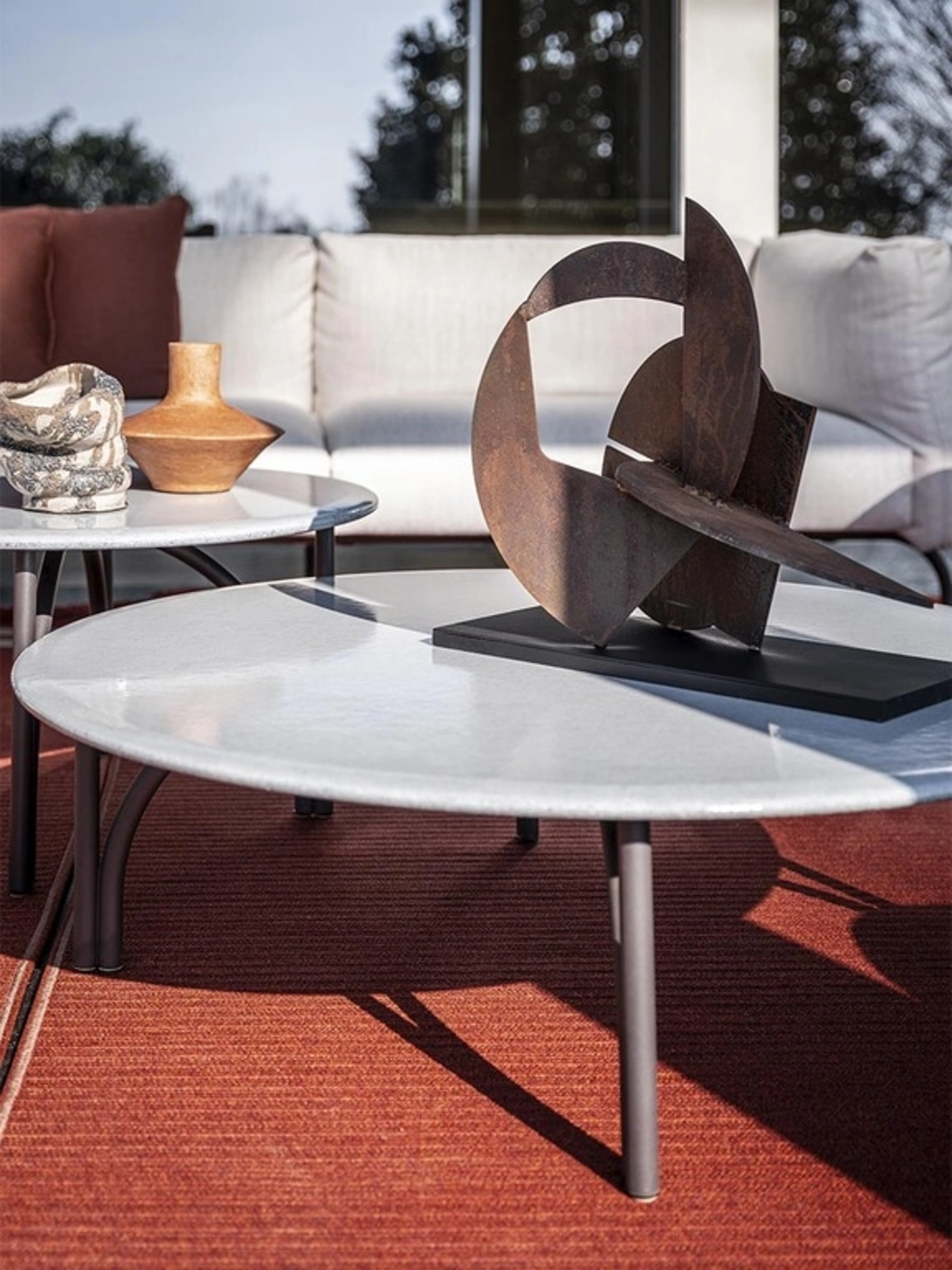 Costruisci il tuo outdoor con l’Arredo Giardino di grande fascino che presentiamo in negozio: non sarà difficile assicurarti una serena quotidianità. In estate i giardini sono quasi altri locali di casa, da arredare con stile: glimobili occorre che siano esteticamente gradevoli e resistenti agli agenti atmosferici. Tavolino Mirabell di Poltrona Frau: fa parte della ricca collezione di mobili per il giardino del brand, garanzia di qualità ed eccellenza nel campo. Chi possiede uno spazio all'aperto sa che è una fortuna poterne usufruire nei mesi estivi, facendo due chiacchiere con amici e parenti o gustandosi il paesaggio naturale.